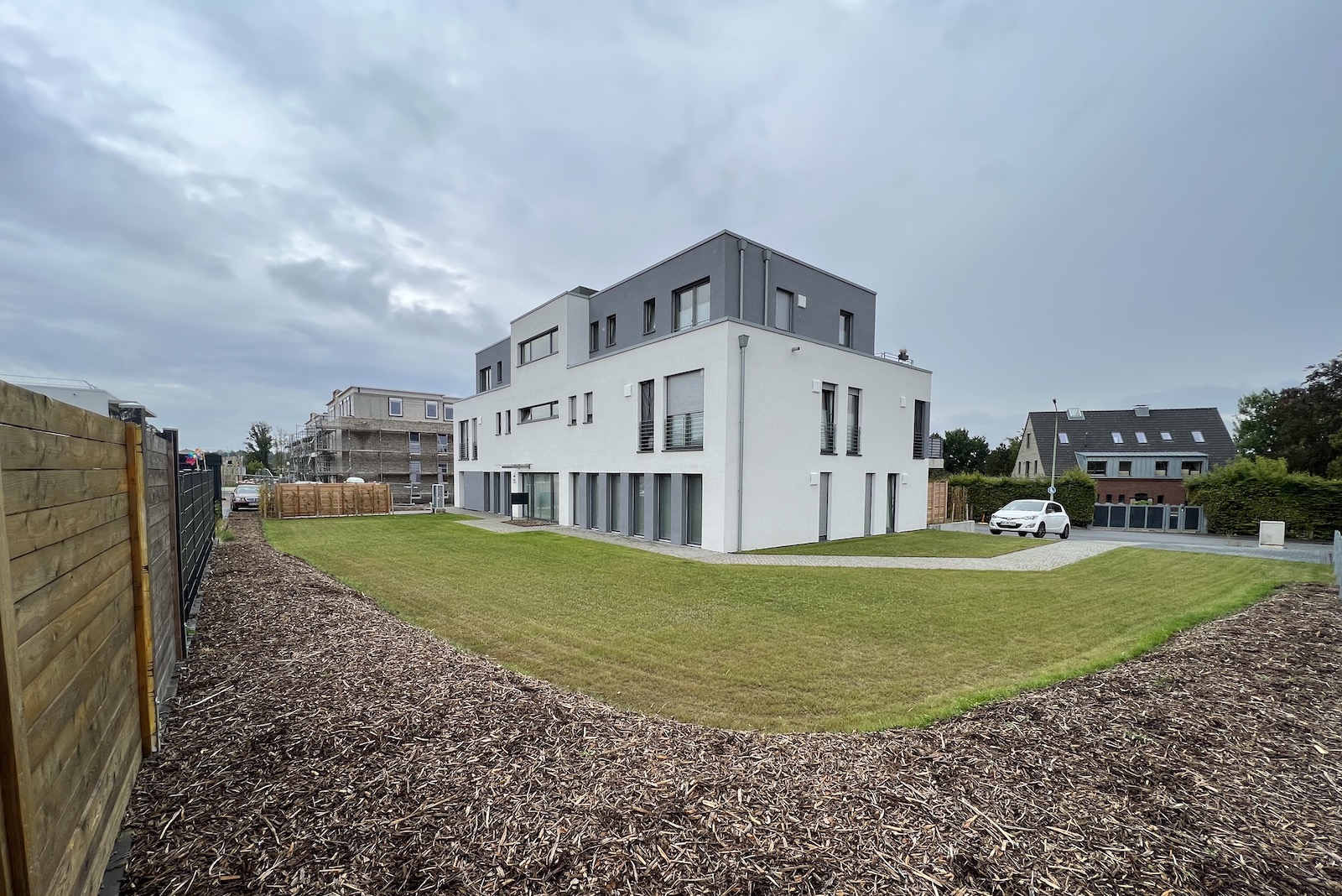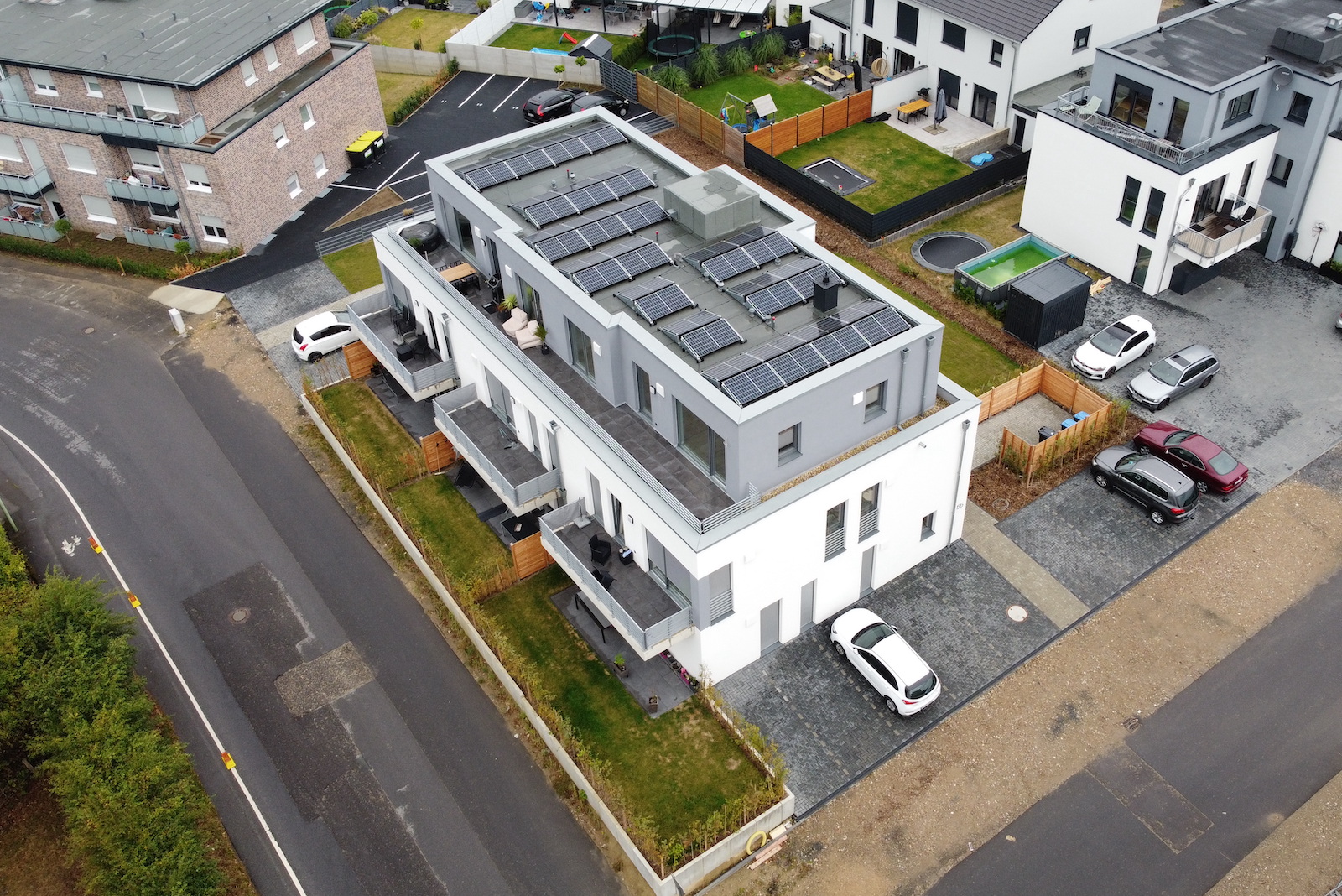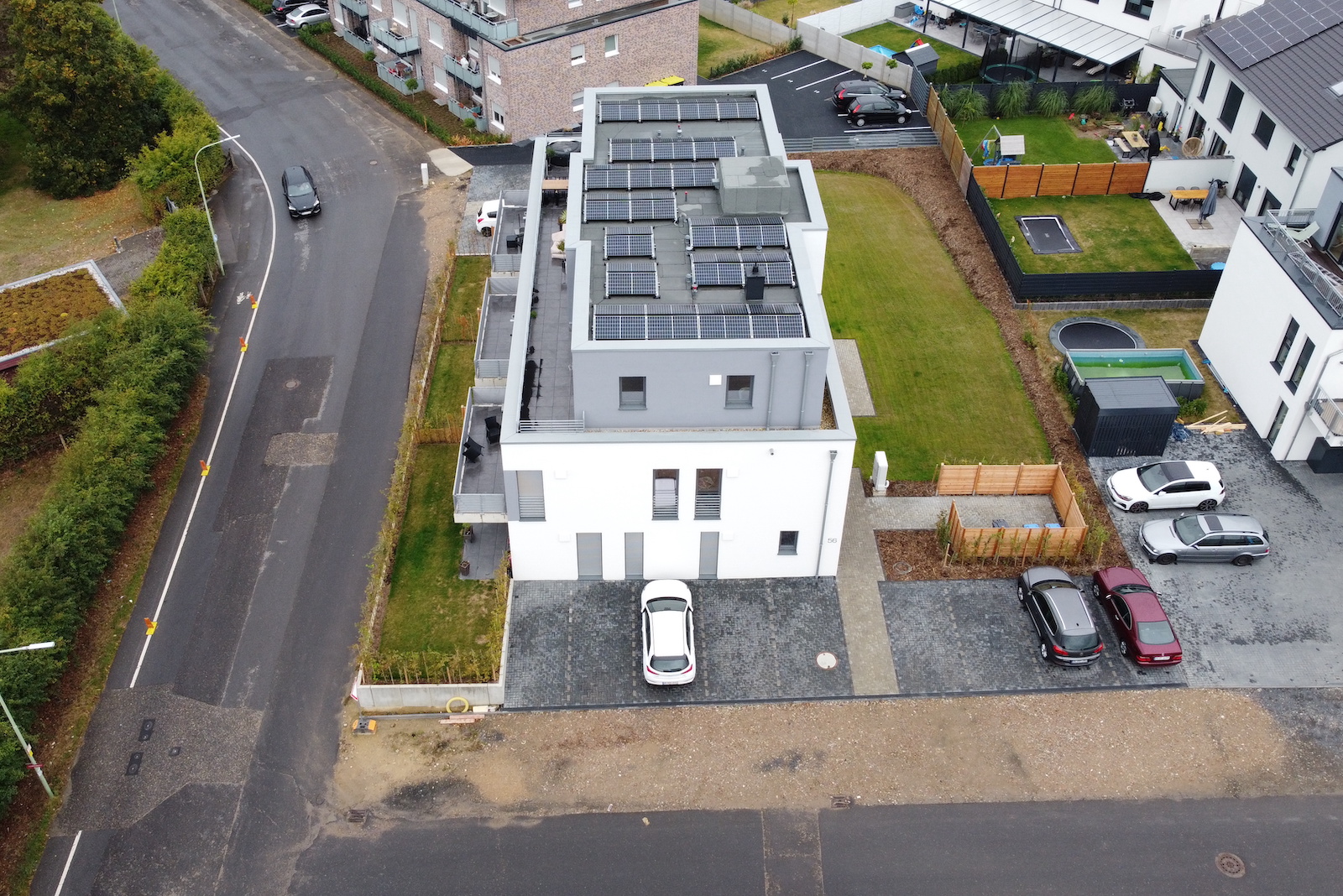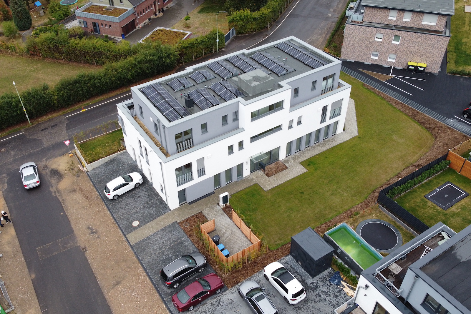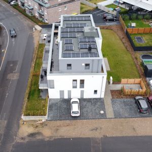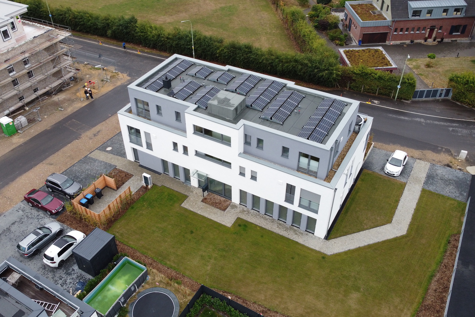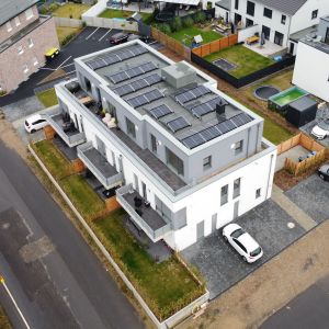 Bei dem Mehrfamilienhaus handelt es sich um einen nicht unterkellerten Baukörper mit 8 Wohneinheiten in der Stadtrandsiedlung Stolberg. Dieses Projekt wurde in Kooperation mit dem Architekturbüro Beissel erarbeitet, welches für den Entwurf verantwortlich zeichnet. Ohler Architekten übernimmt hierbei die weiterführende Ausführungsplanung und die Bauleitung für den GÜ aus Wassenberg, die HK Projektentwicklungsgesellschaft. Die Kellerersatzräume sind im Erdgeschoss untergebracht. Die Stellplätze sind vor und neben dem Haus angeordnet.