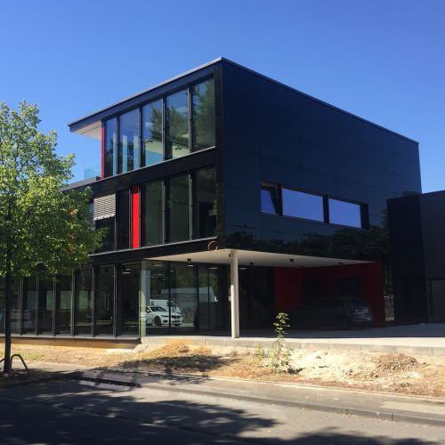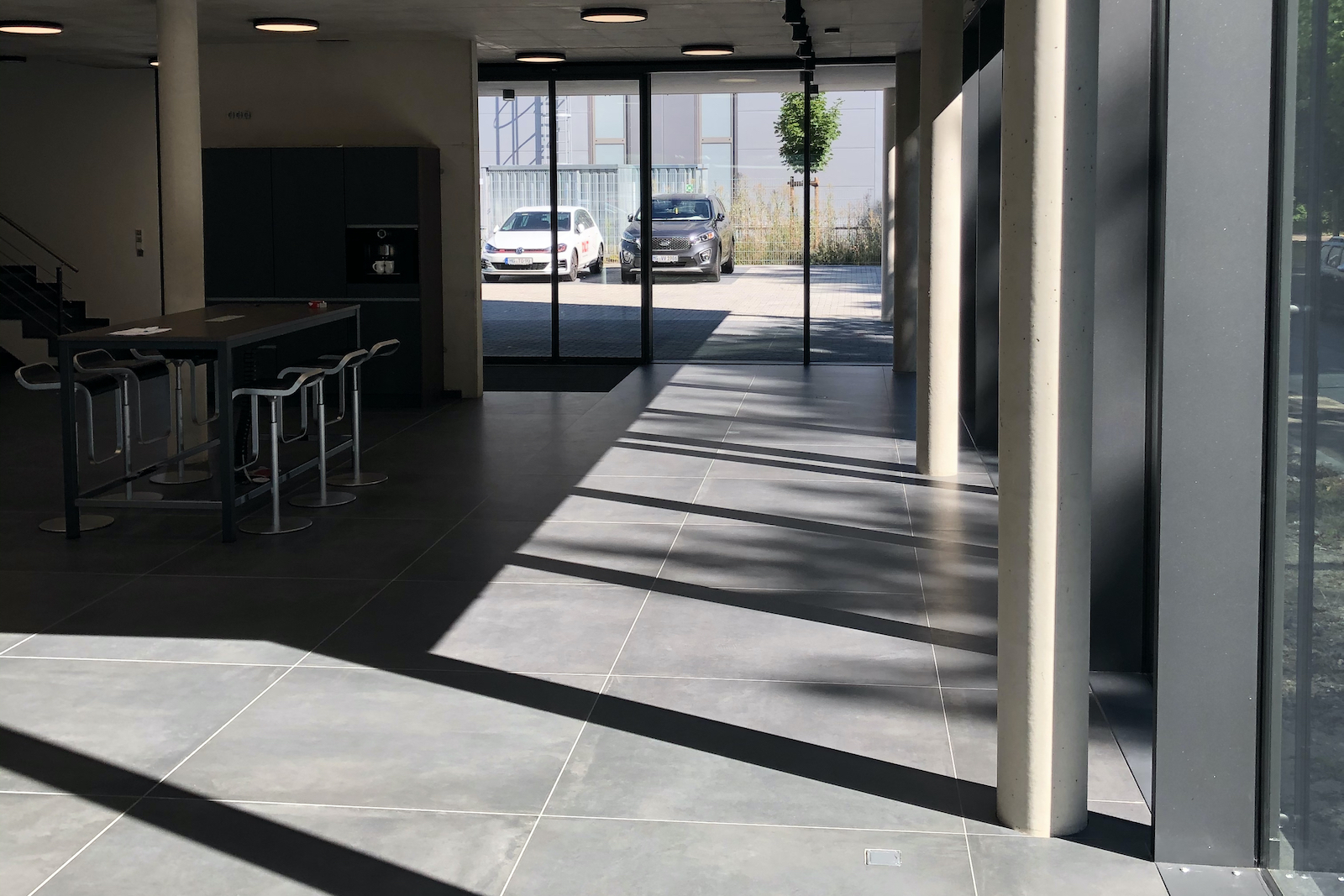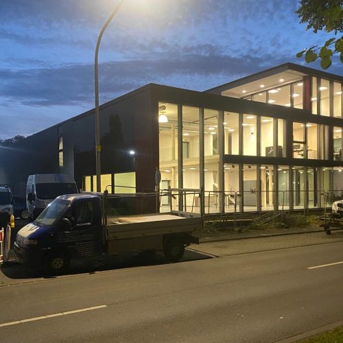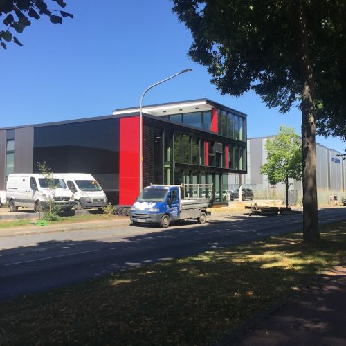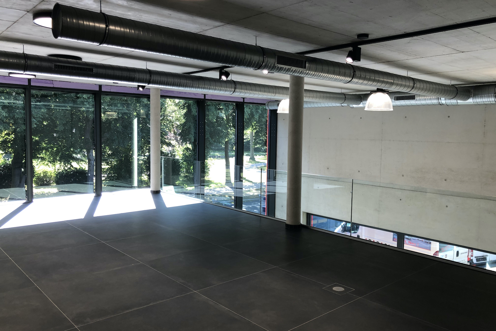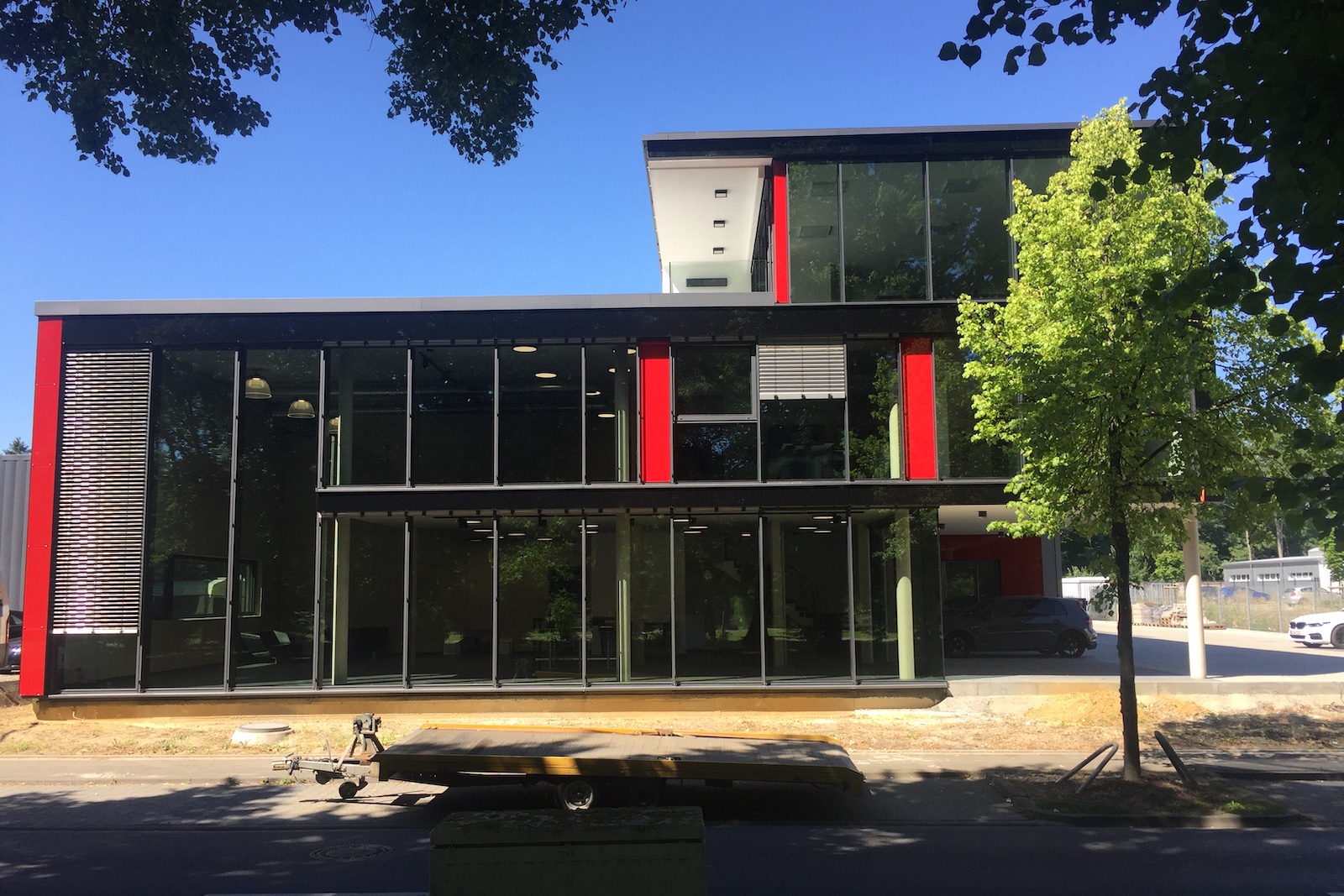 Das dreigeschossige Verwaltungsgebäude wurde zur Strassenseite mit einem Pfosten Riegel System komplett verglast. Die Produktionsstätte wurde als Stahlhalle mit Sandwichpaneelen erstellt. Innerhalb des Verwaltungsgebäudes gibt es große Ausstellungsbereiche in denen teilweise über zwei Geschosse hinweg größere Ausstellungsstücke präsentiert werden können.