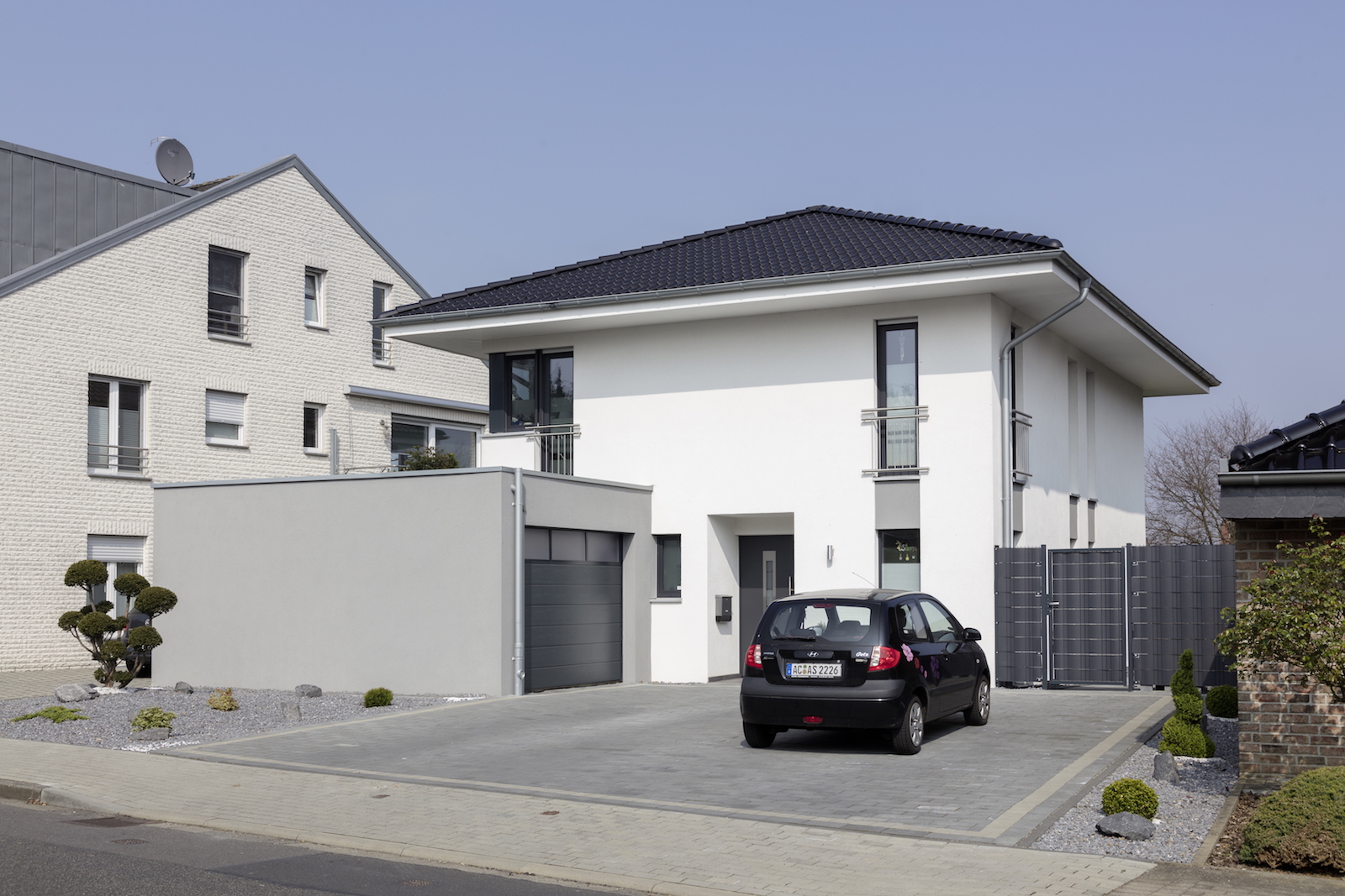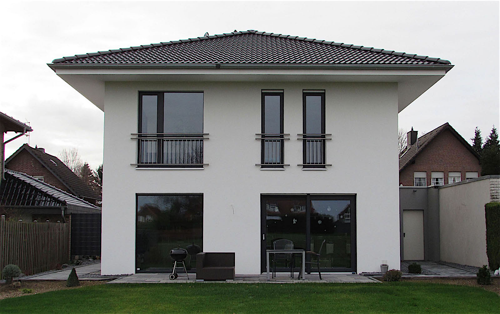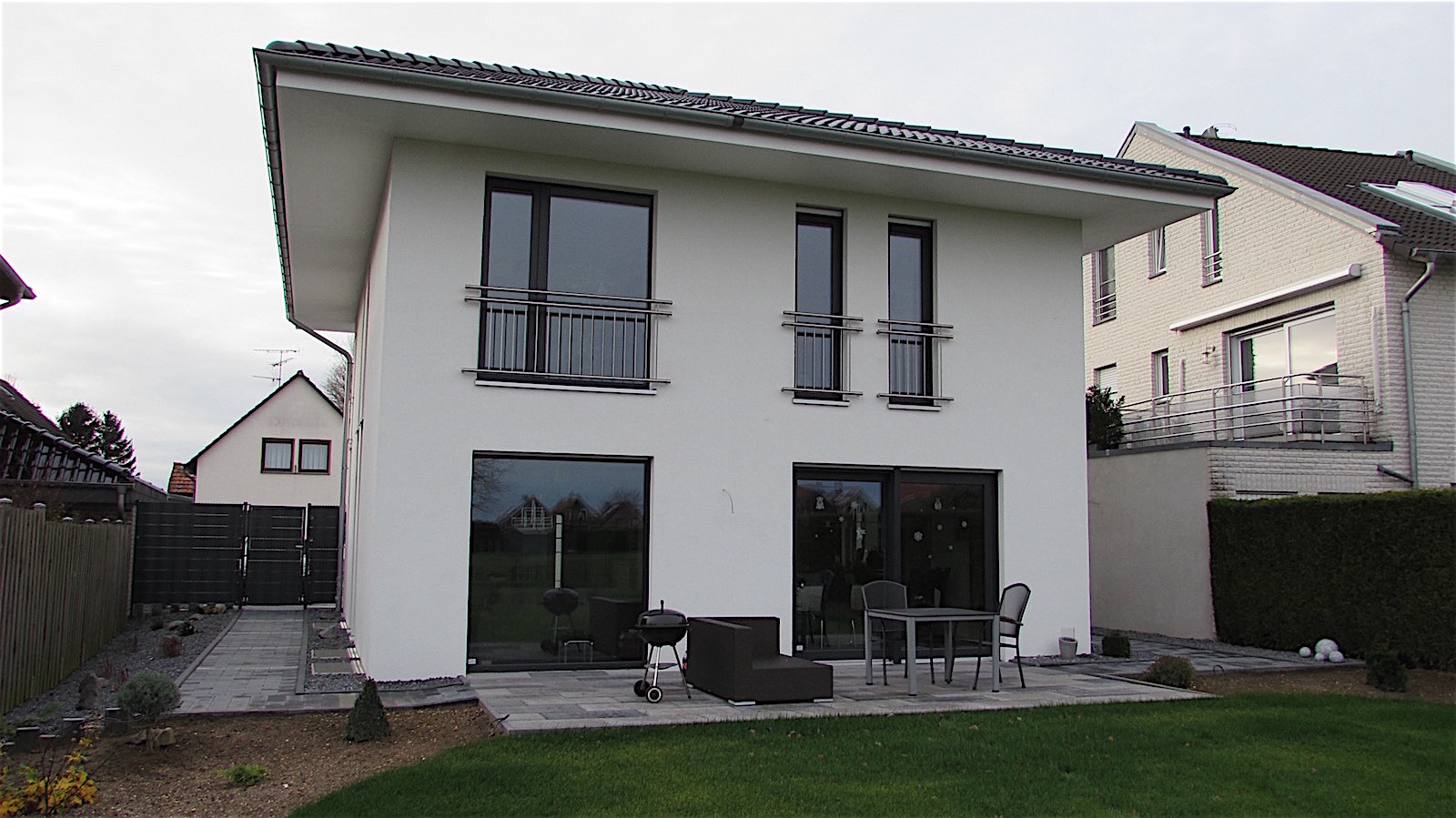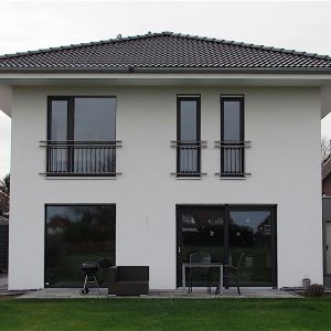 Das Einfamilienhaus mit Doppelgarage wurde 2014 in Baesweiler errichtet. Es ist halb unterkellert und hat auf weiteren 2 Vollgeschossen eine Wohnfläche von 145 m². Beheizt wird das Haus mit einer Gastherme.
