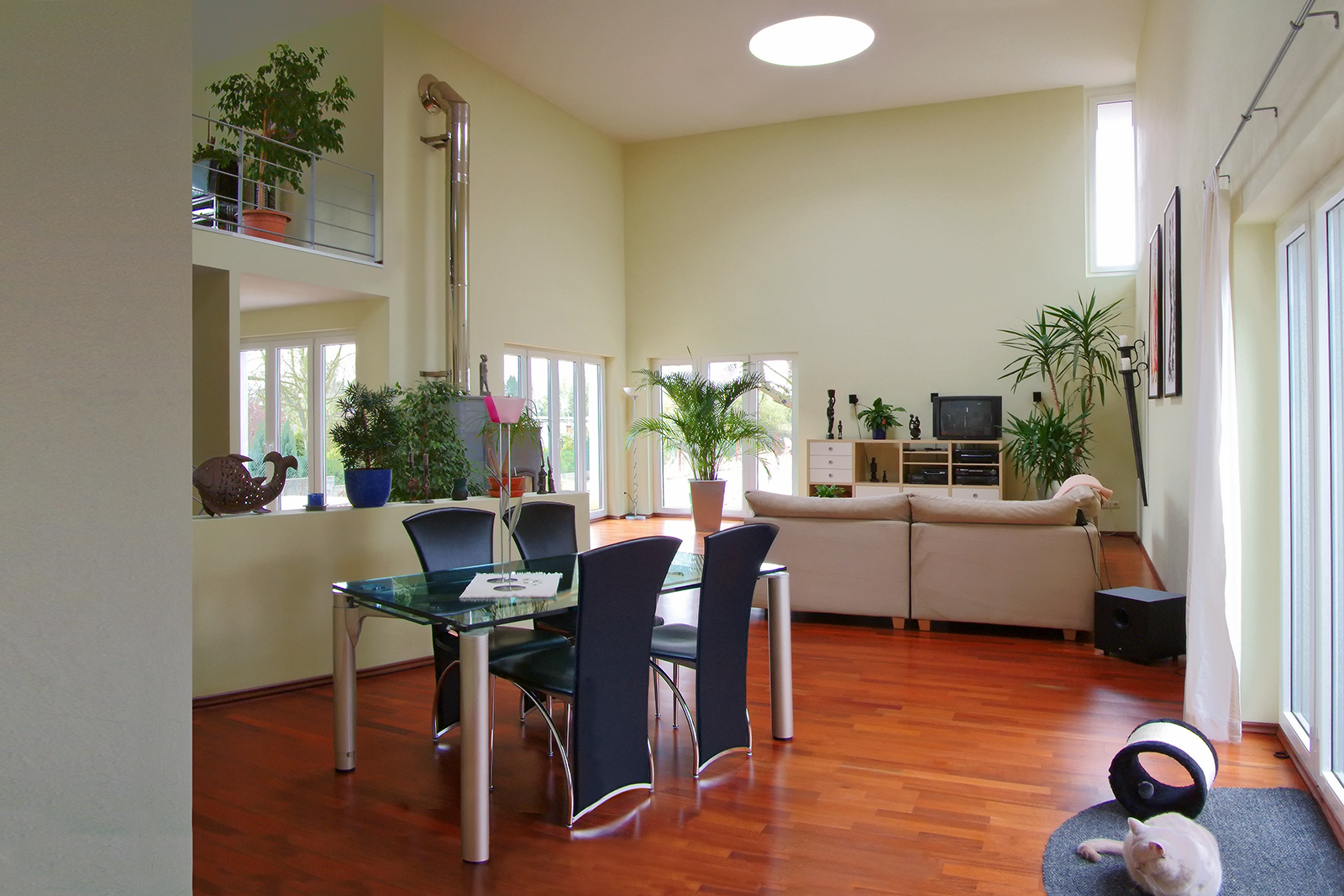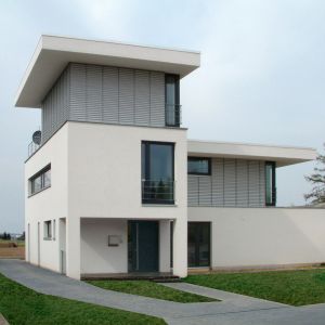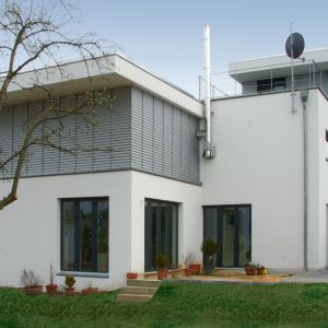 Das Einfamilienhaus hat insgesamt eine Wohn-und Nutzfläche von etwa 230 m². Mit seinen offenen Ebenen vermittelt das Bauwerk seinen Bewohnern ein besonderes Raumerlebnis. Die Lichtführung in den hohen Räumen sorgt für Transparenz. Das Gebäude wurde massiv errichtet und hat eine Wärmedämmputzfassade. Im Dachgeschoss wurden die Fassadenbereiche mit Aluminiumpaneelen verkleidet.