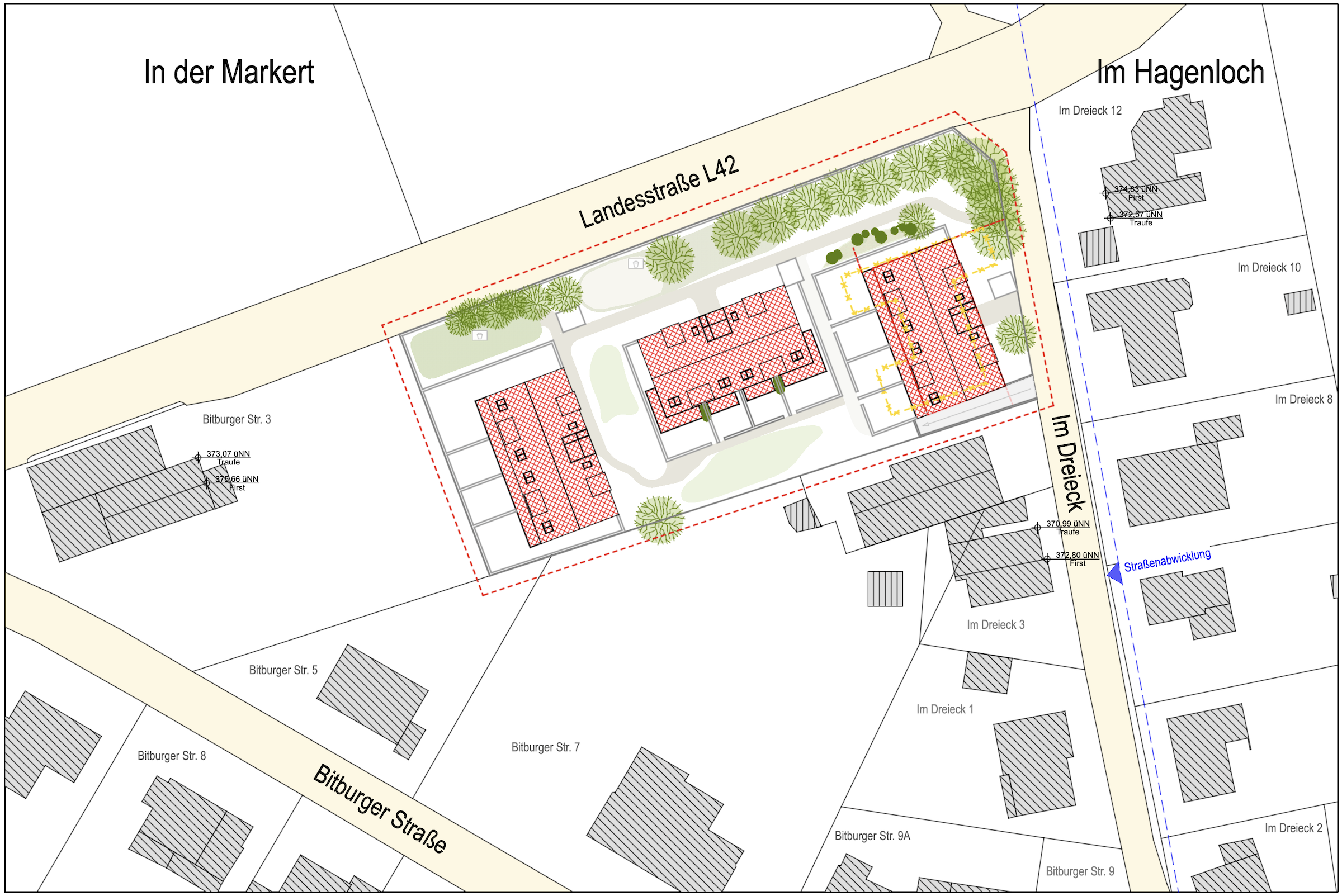 Neubau von drei Mehrfamilienhäusern mit Tiefgarage