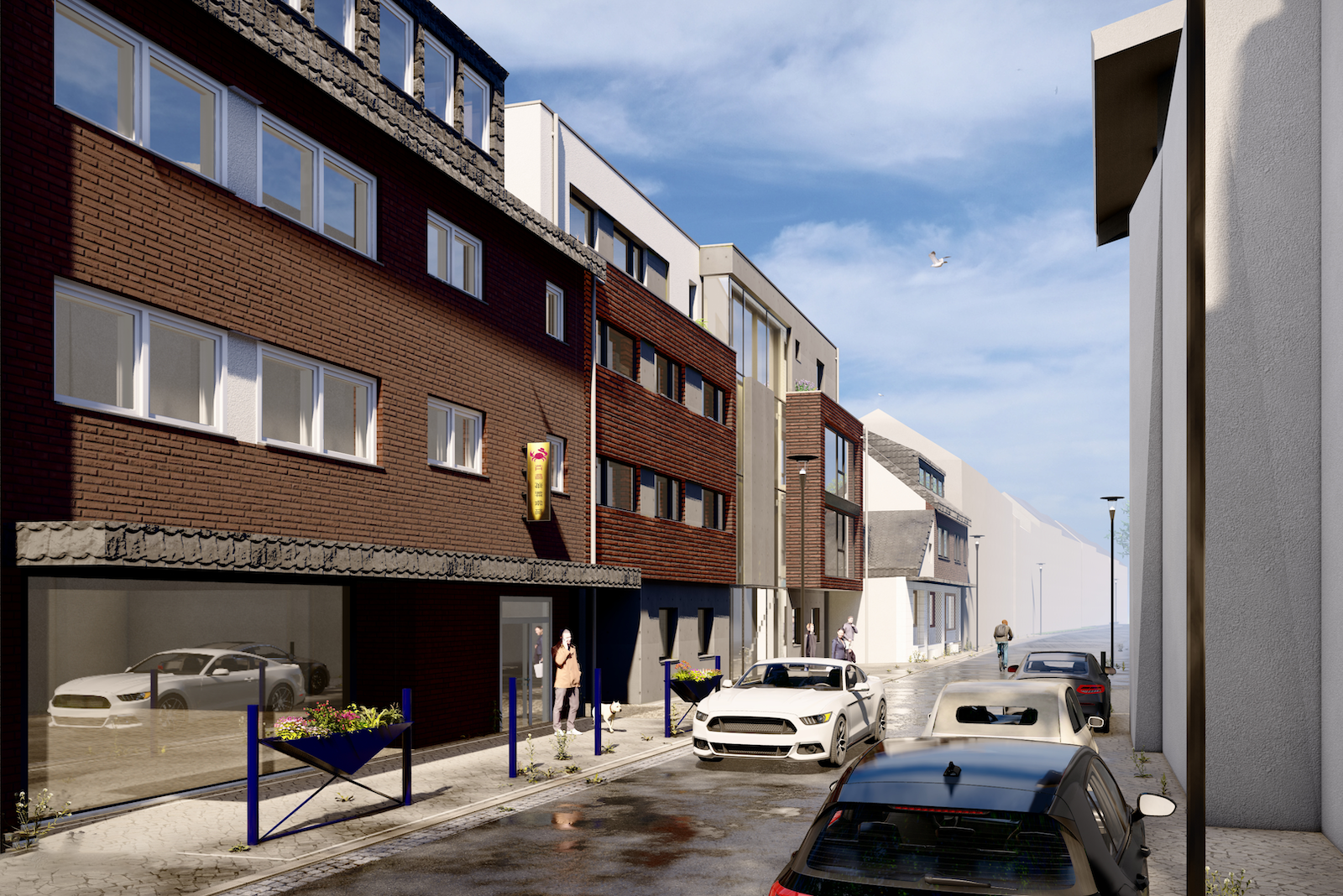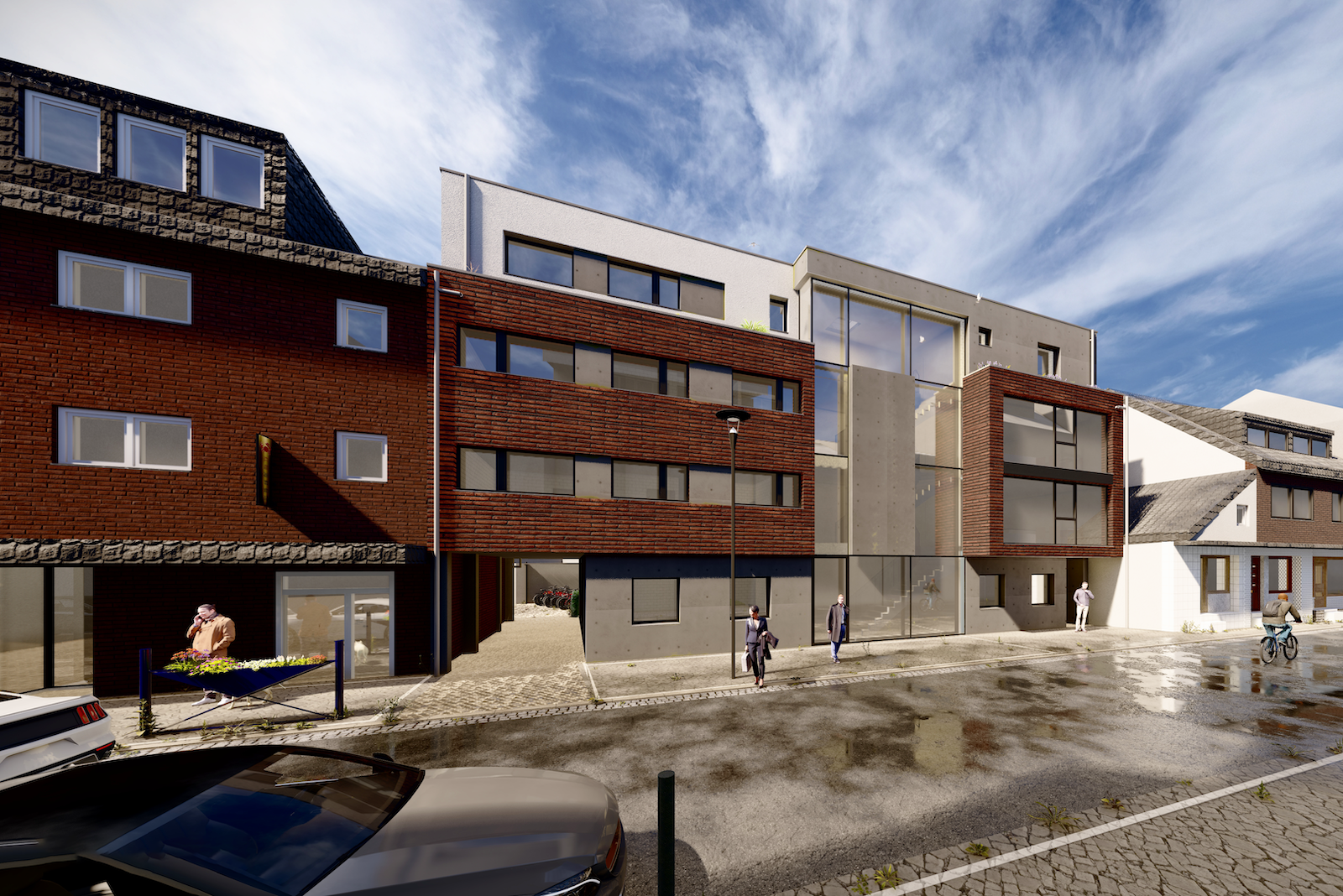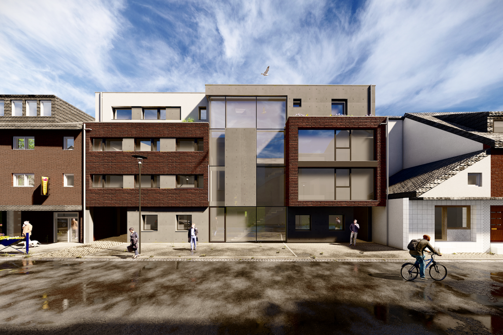 Das neue Bauvorhaben wird als 11-Familienhaus in der Nähe des Marktplatzes in Kohlscheid/ Herzogenrath geplant. Hierzu wird zunächst eine heterogene bestehende Bebauung rückgebaut.