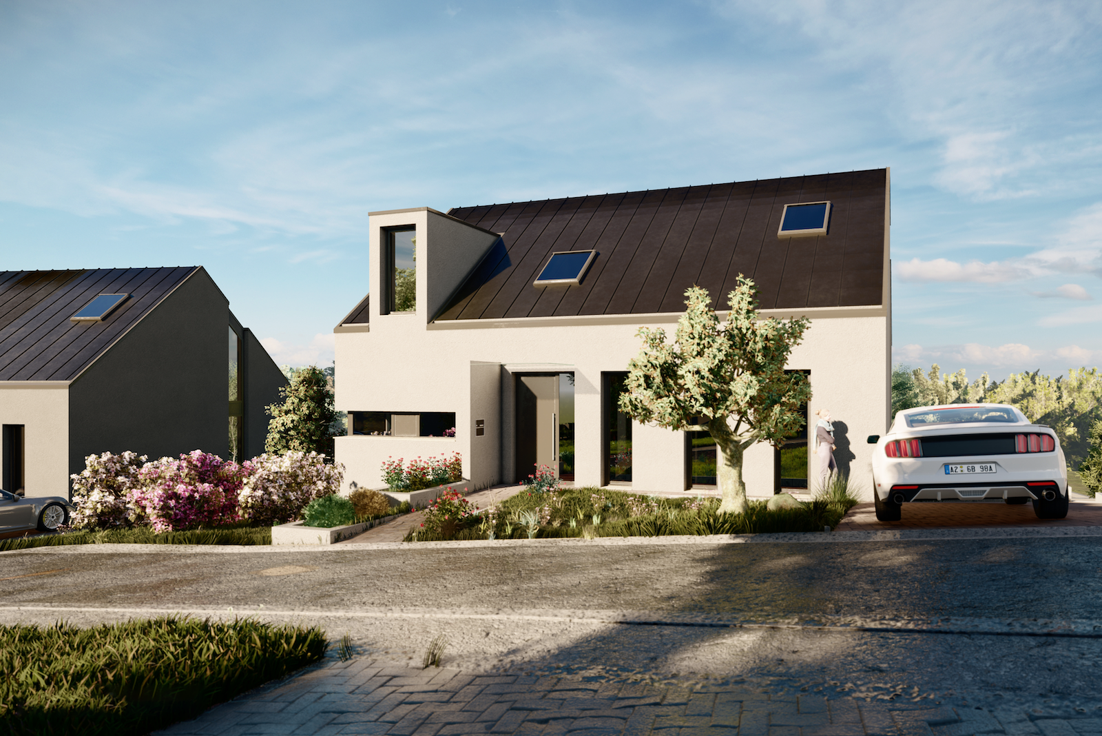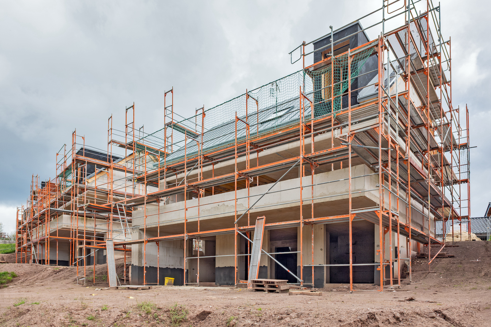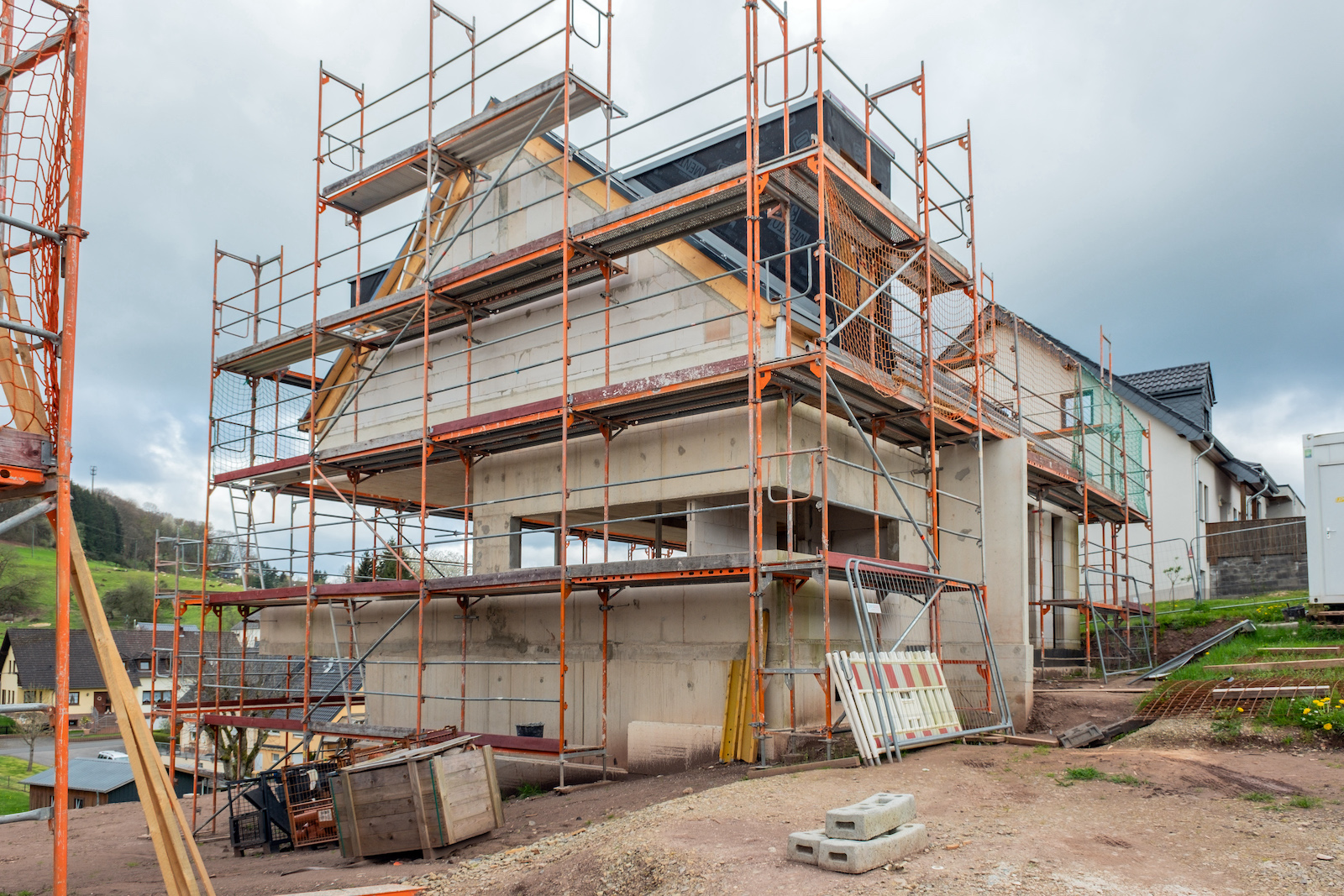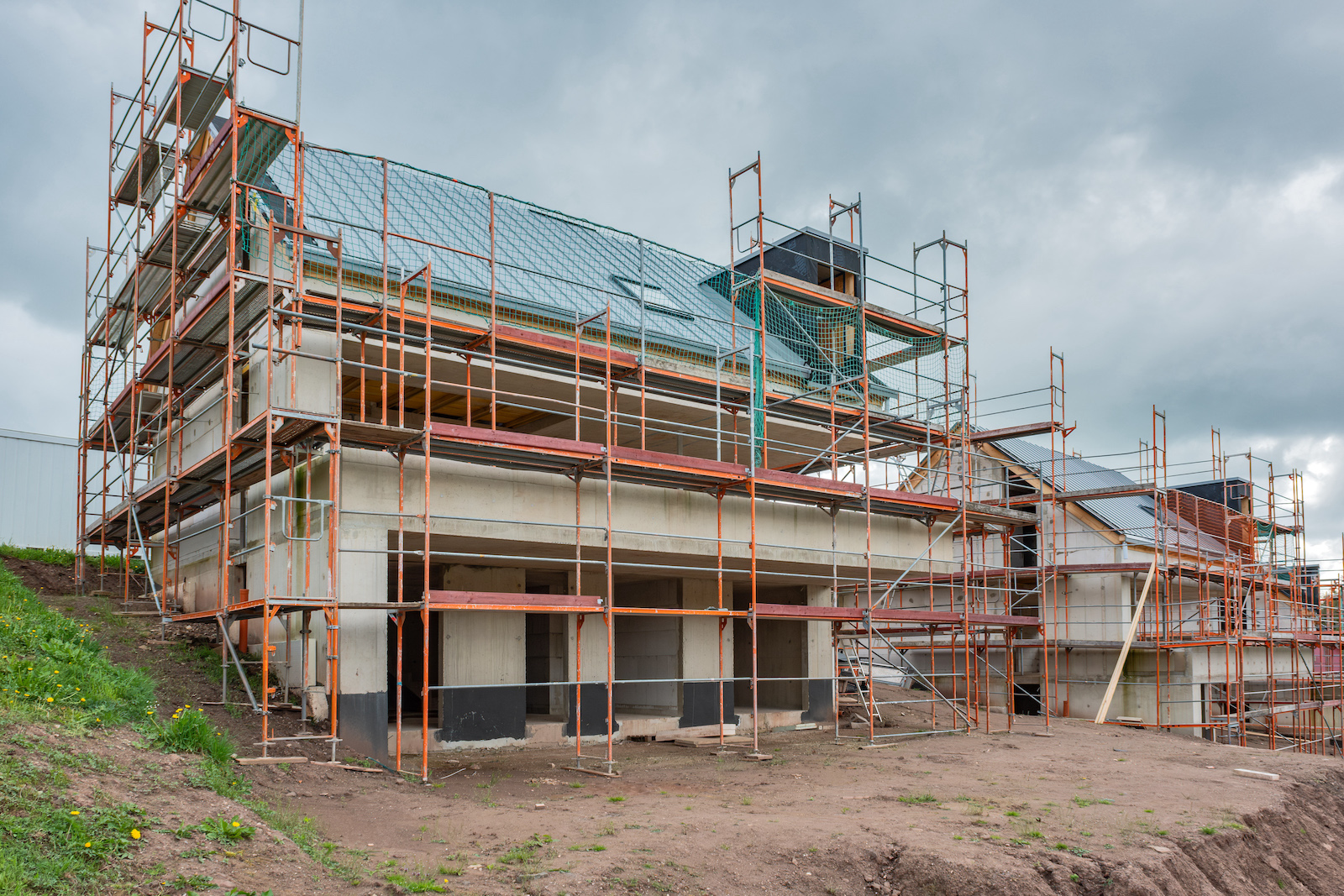 In Utscheid Rheinland-Pfalz entstehen diese drei Einfamilienhäuser mit einer Wohnfläche von je 220 m². Die drei Gebäude befinden sich in einer steilen Hanglage und sind damit prädestiniert für eine Souterrain-Planung, daher sind die Gebäude komplett unterkellert. Im Rahmen der Gestaltung der Außenanlagen werden die Vorgaben der Gemeinde zur Landschaftsplanung eingehalten und Hecken gepflanzt.