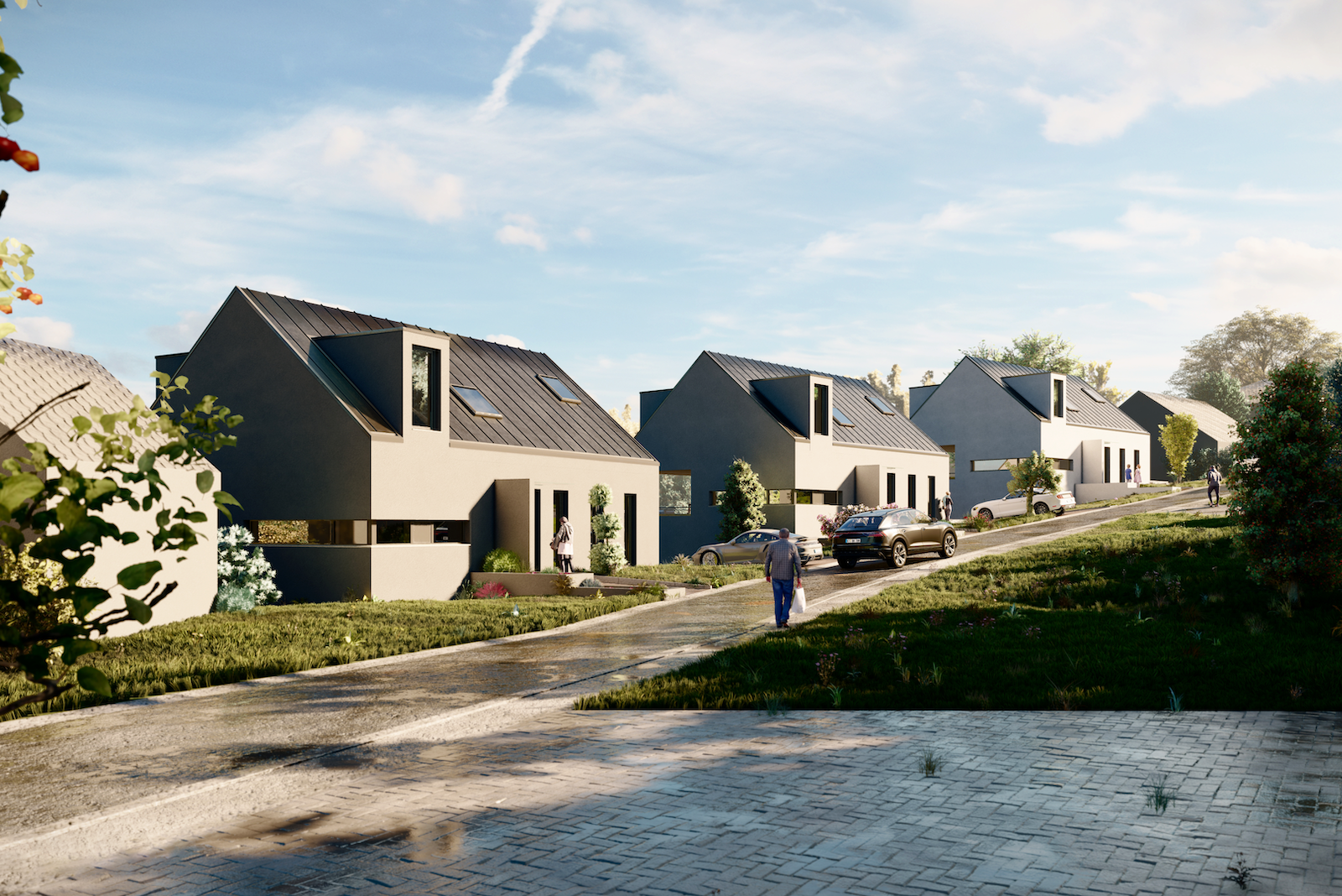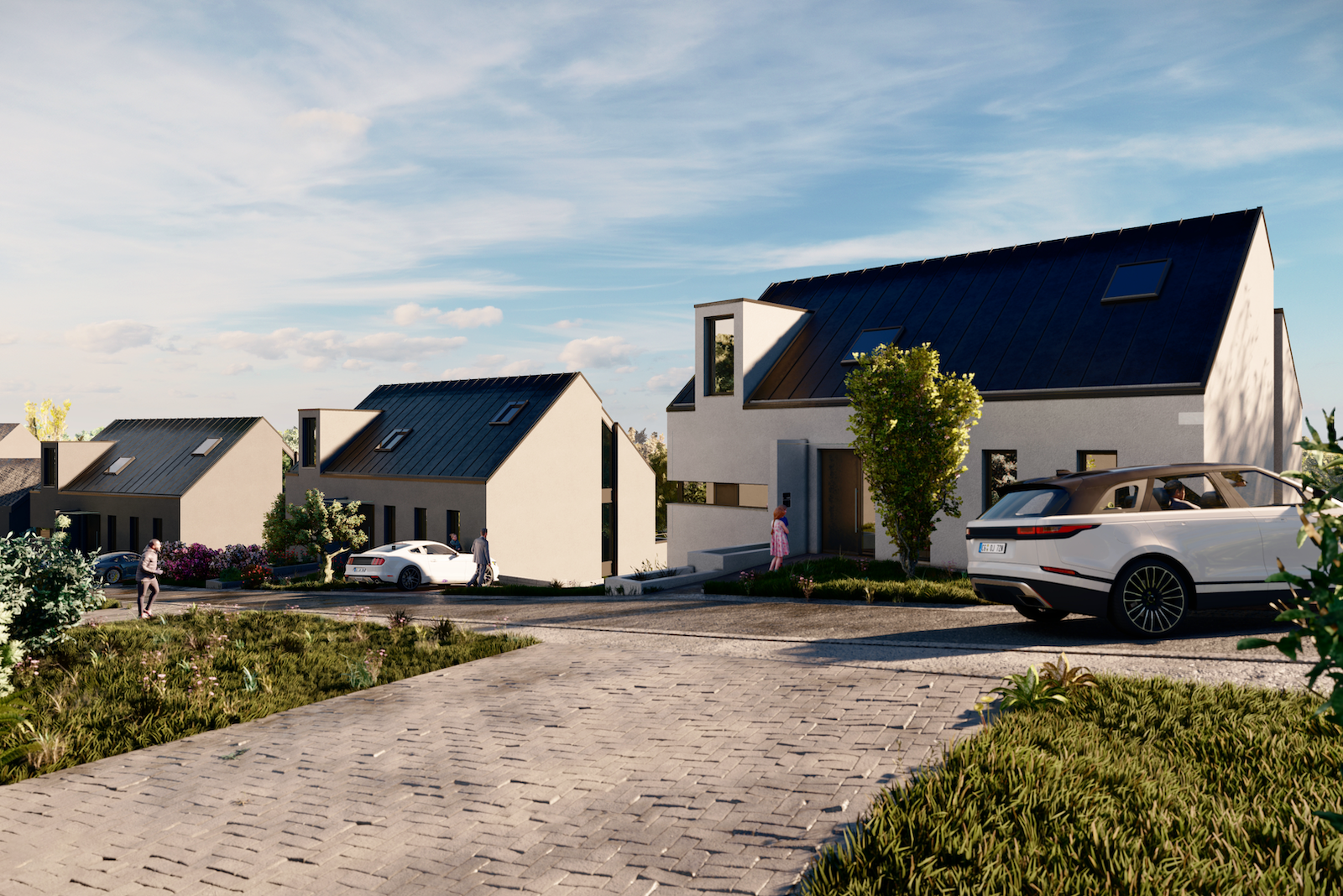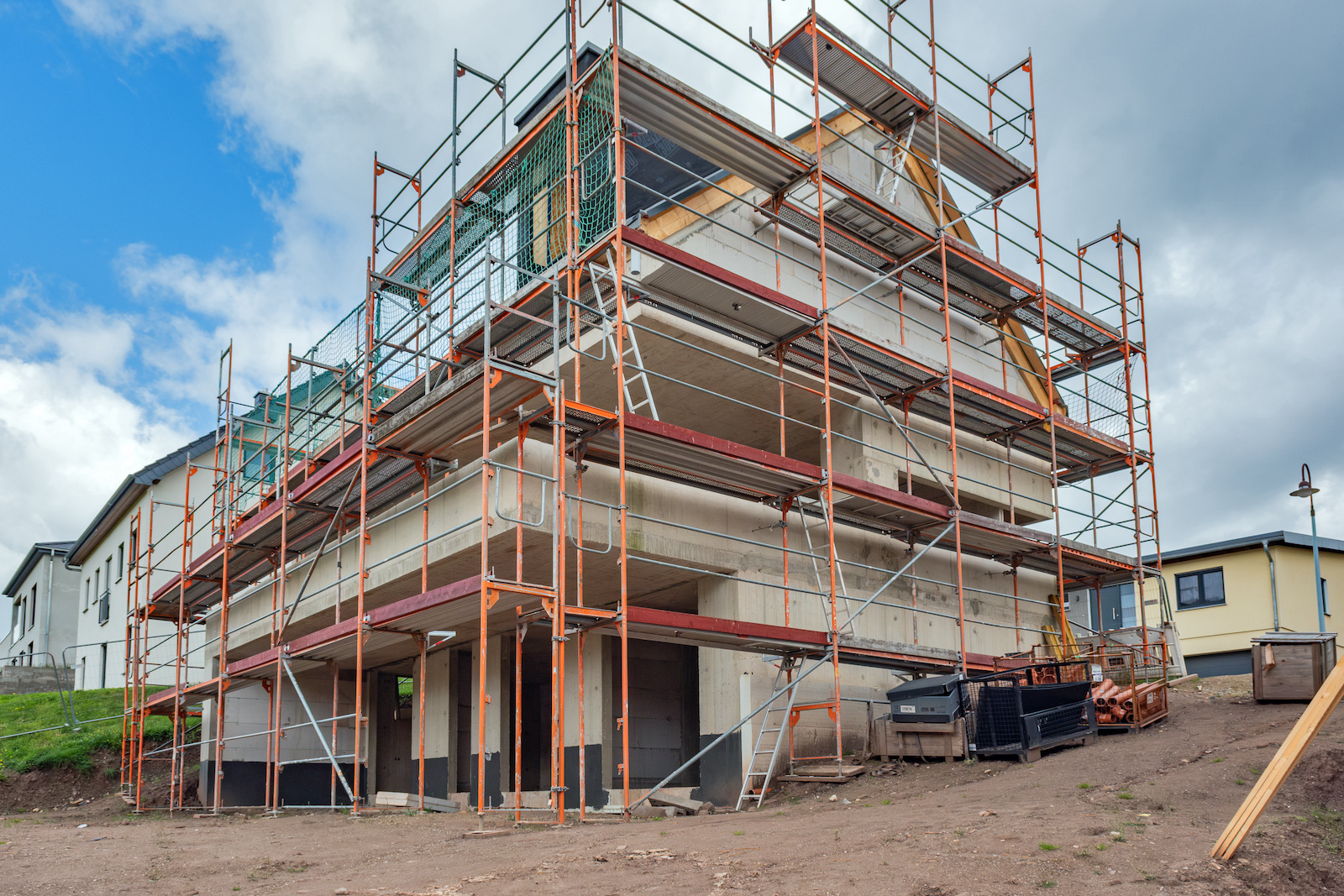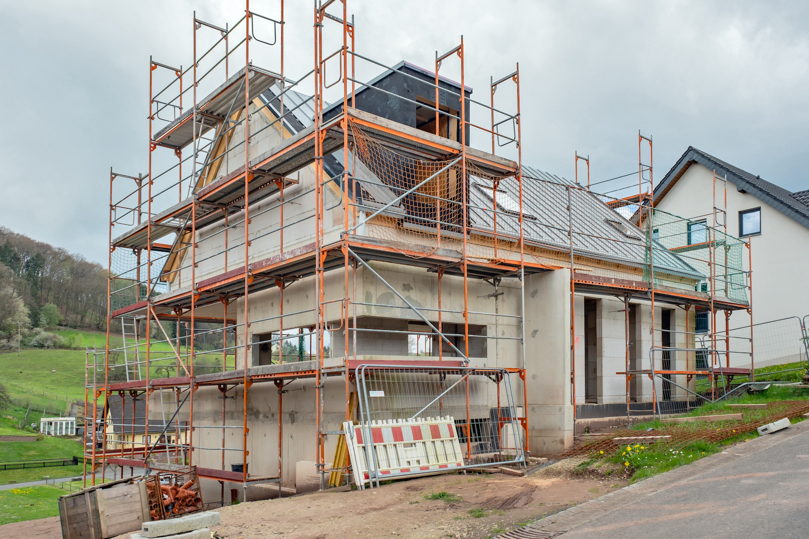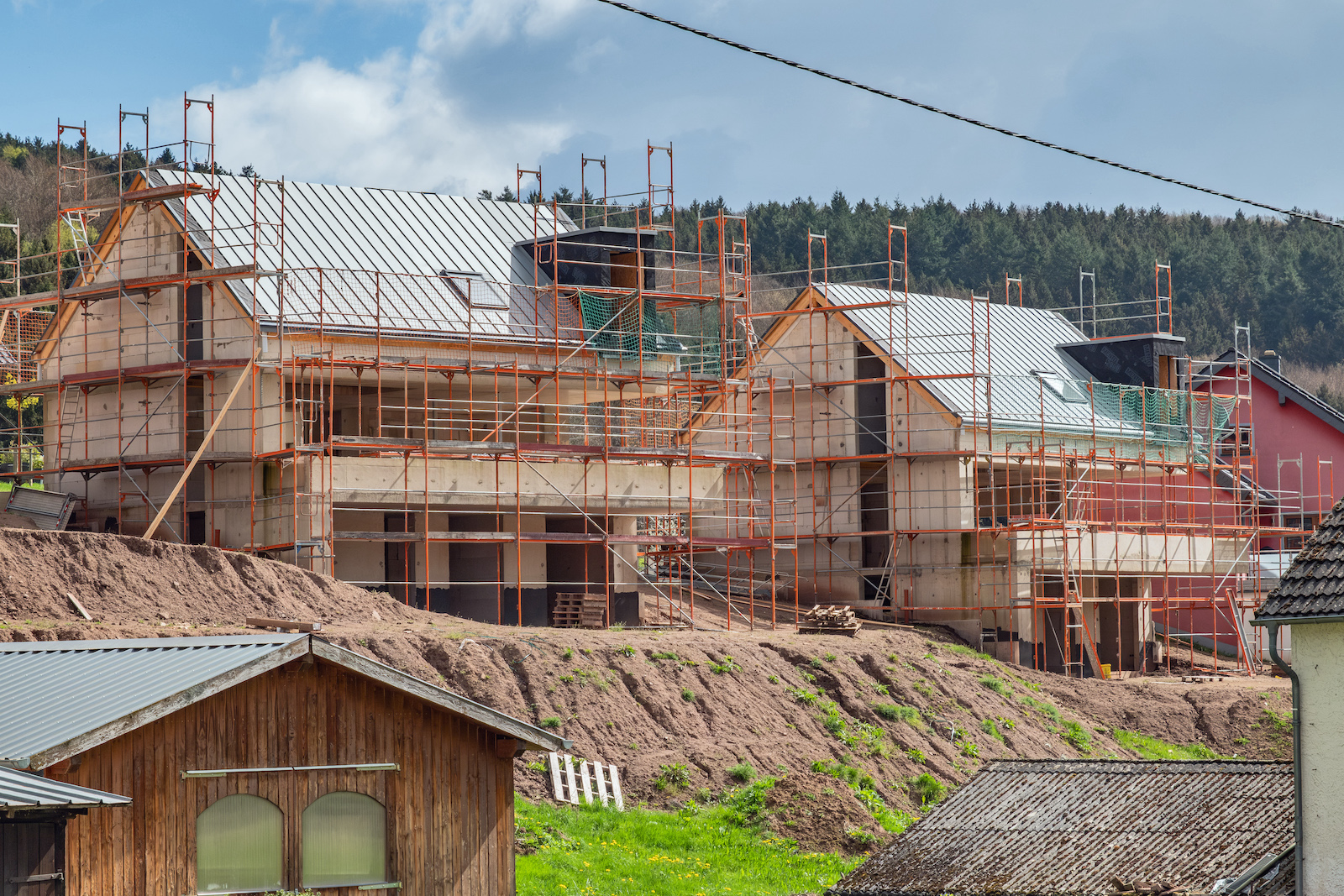 In Utscheid Rheinland-Pfalz entstehen diese drei Einfamilienhäuser mit einer Wohnfläche von je 220 m². Die drei Gebäude befinden sich in einer steilen Hanglage und sind damit prädestiniert für eine Souterrain-Planung, daher sind die Gebäude komplett unterkellert. Im Rahmen der Gestaltung der Außenanlagen werden die Vorgaben der Gemeinde zur Landschaftsplanung eingehalten und Hecken gepflanzt.