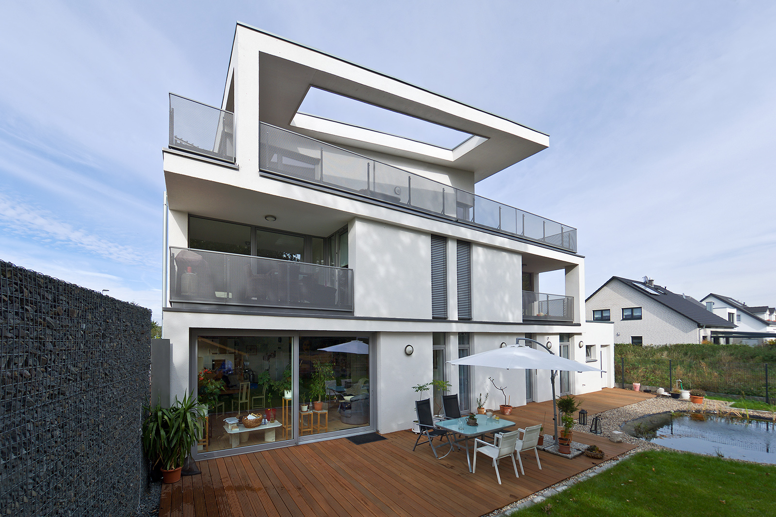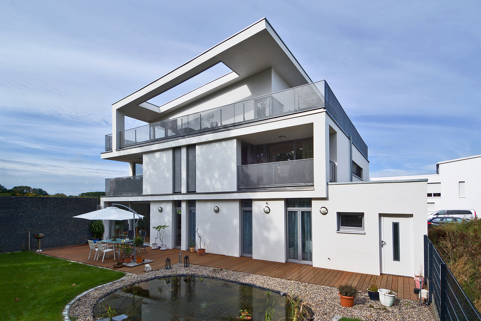 Das 4-Familienhaus wurde in Meerbusch-Strümp errichtet. Die Wohnungsgrößen liegen bei 120qm im Erdgeschoss, je 75 qm im Obergeschoss und 100 qm im Dachgeschoss.