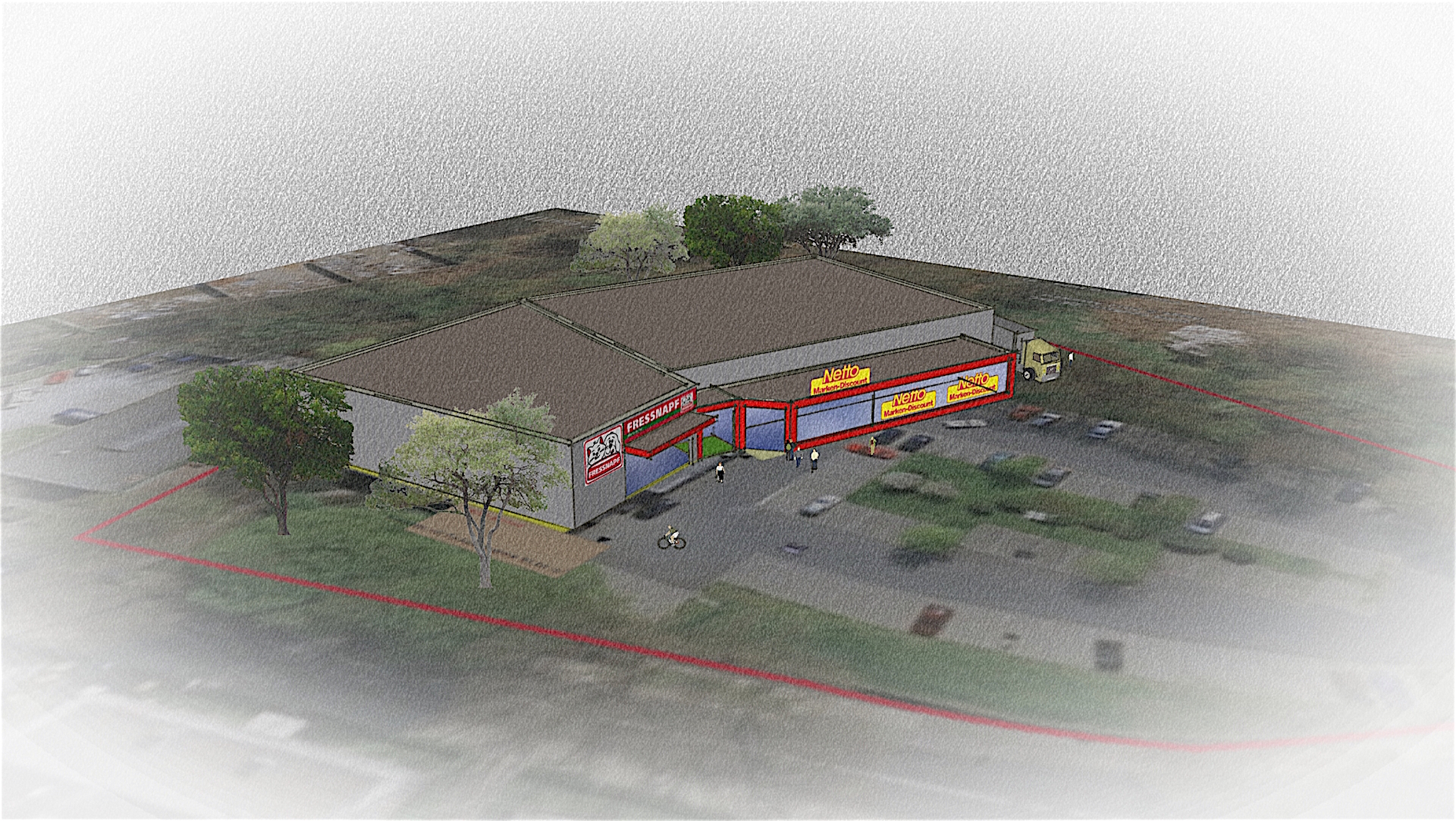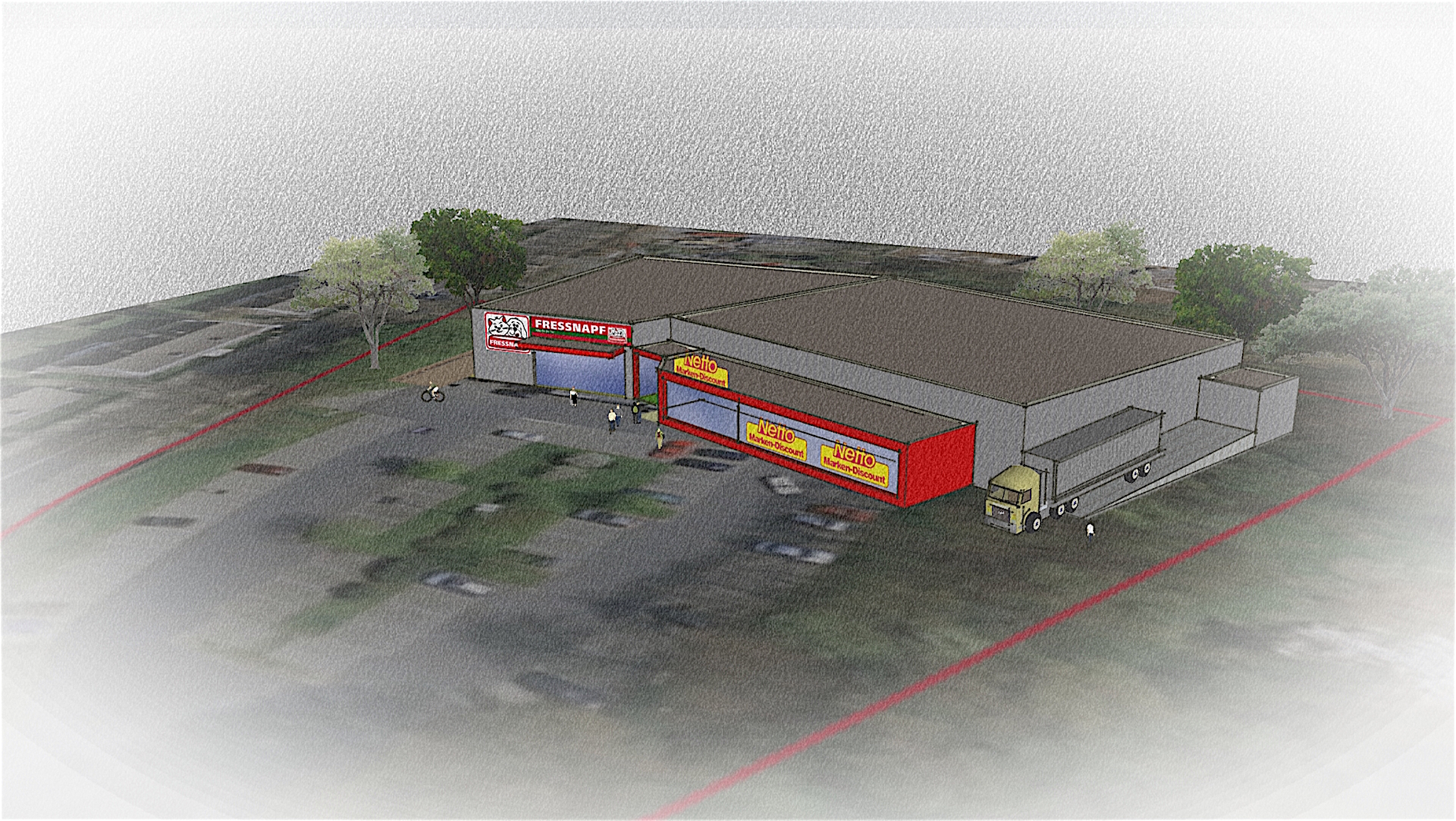 Die Planung sah zunächst vor, den bestehenden Markt zu sanieren, was sich aber rein wirtschaftlich als nicht tragbar herausstellte. Dennoch wurde nur ein Teil des bestehenden Marktes abgerissen und ein neuer Gebäudeteil angefügt in dem sich nunmehr der neue Nettomarkt befindet. Der Altbaubereich ist entsprechend saniert worden und wird demnächst einer anderen Nutzung zugeführt.