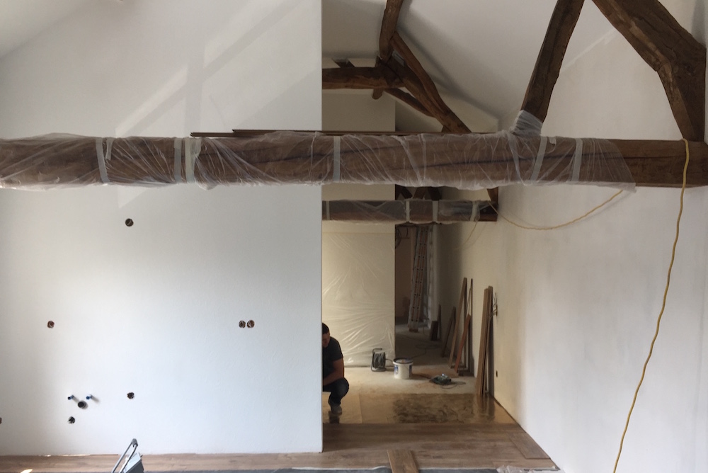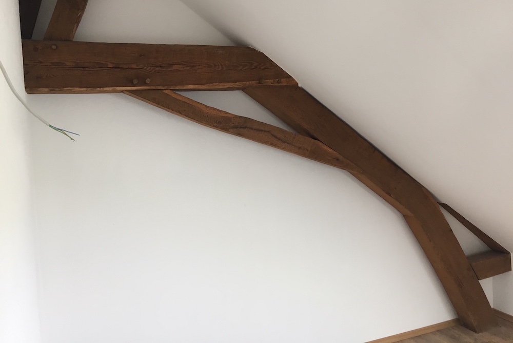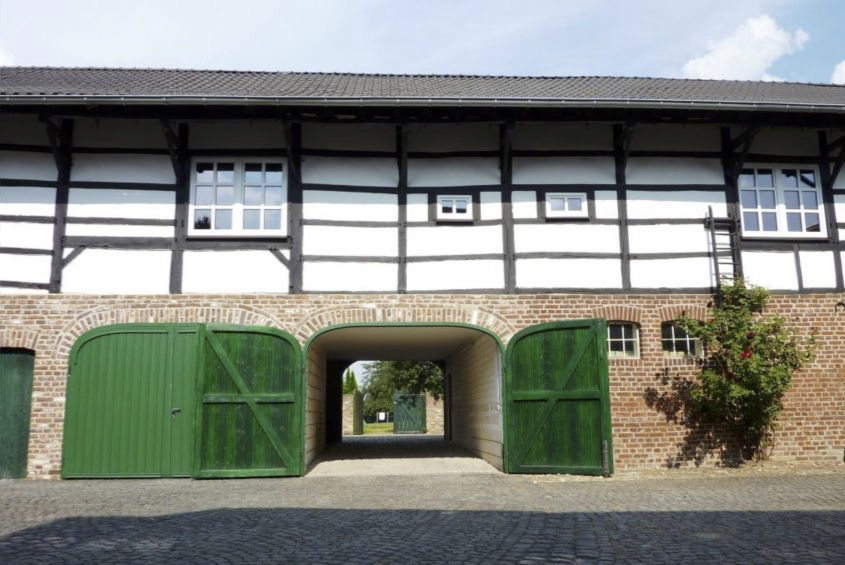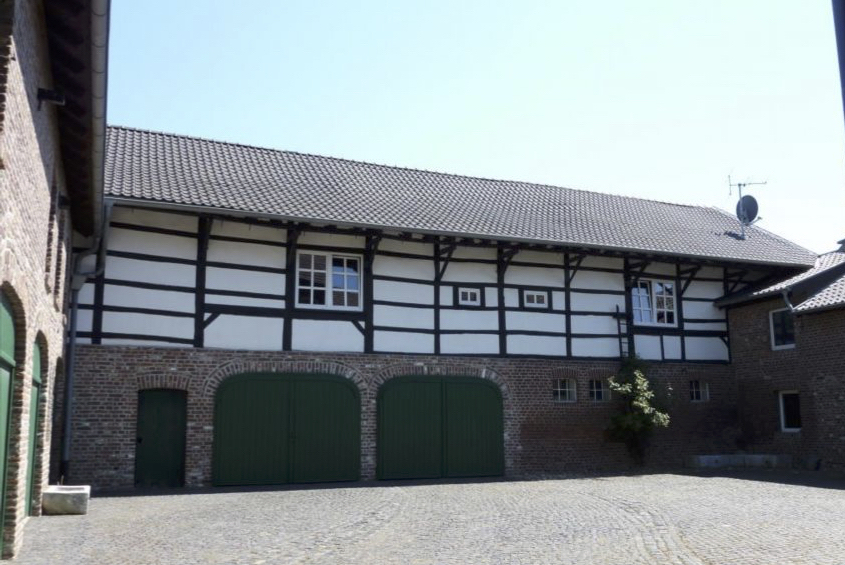 Der in Erkelenz unter Denkmalschutz stehende Vierkanthof sollte in Teilbereichen zu Wohnzwecken umgebaut werden. Die Einbindung der vorhanden Sprengwerke spielten bei der Umsetzung eine entscheidende Rolle. Da die Dächer ausgebaut wurden und auch neue Dachbeläge bekamen, war dies unter statischen Erfordernissen eine anspruchsvolle Aufgabe. Die bestehenden historischen Dachstuhlkonstruktionen mussten so statisch ertüchtigt werden, dass der Bestand nicht in Mitleidenschaft gezogen wird.