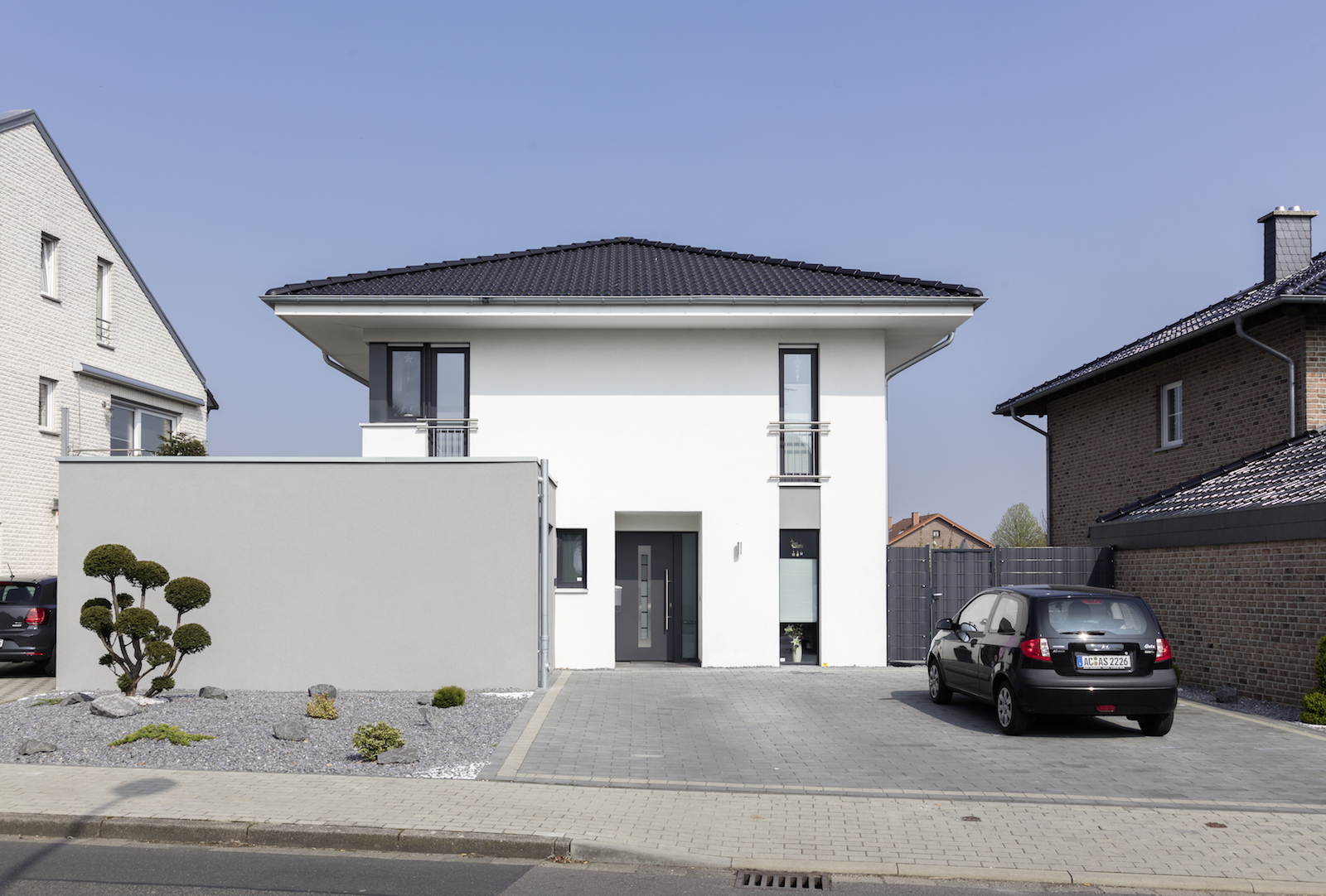 Das Einfamilienhaus mit Doppelgarage wurde 2014 in Baesweiler errichtet. Es ist halb unterkellert und hat auf weiteren 2 Vollgeschossen eine Wohnfläche von 145 m². Beheizt wird das Haus mit einer Gastherme.